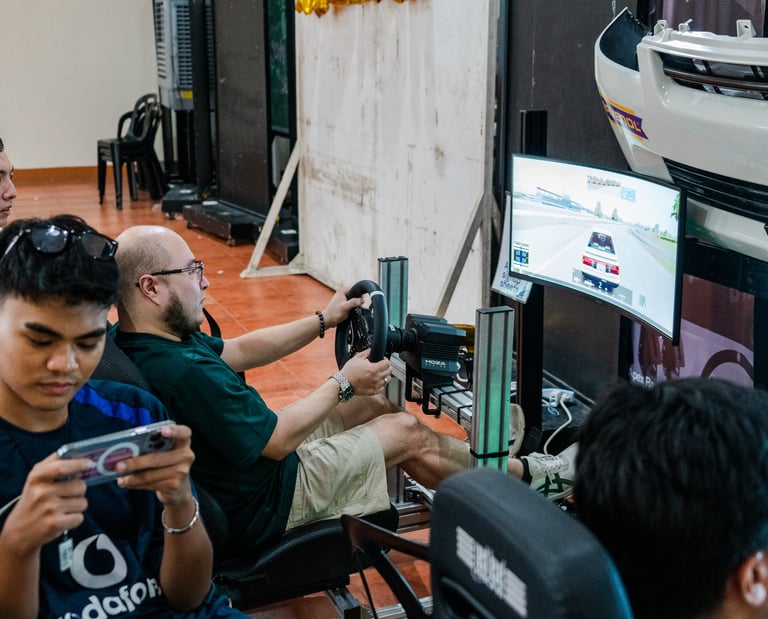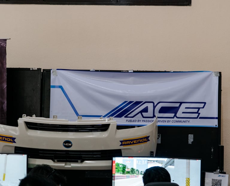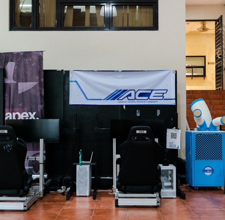 Since its founding in 2006, ACE has been a fixture at RecWeek, bringing Ateneo students closer to the world of cars. Through the years, our booth has showcased car memorabilia, racing gear, and driving simulators that give students a true taste of automotive culture. For RecWeek 2025, we elevated the experience with two racing simulators, provided by Apex Racing Philippines, outfitted with the Moza R5 system and Next Level Racing cockpits.